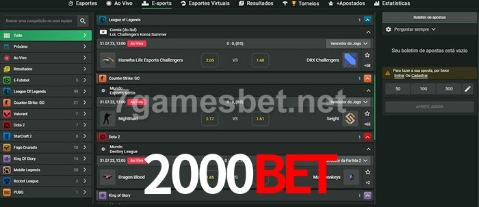 O 2000Bet oferece uma grande seleção de opções de apostas em e-sports com probabilidades competitivas